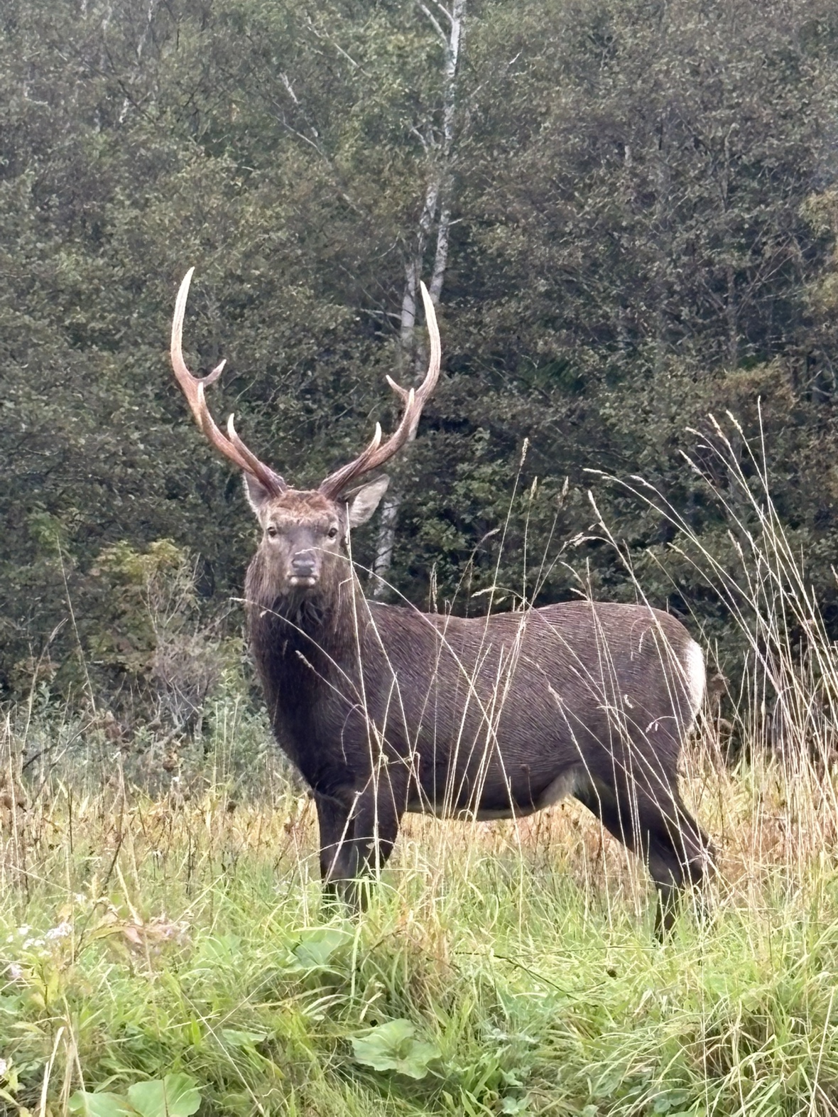 ↑道東からの帰り道、もののけ姫に出てくるシシ神様を思わせるような立派なオスの鹿と出会った1枚。