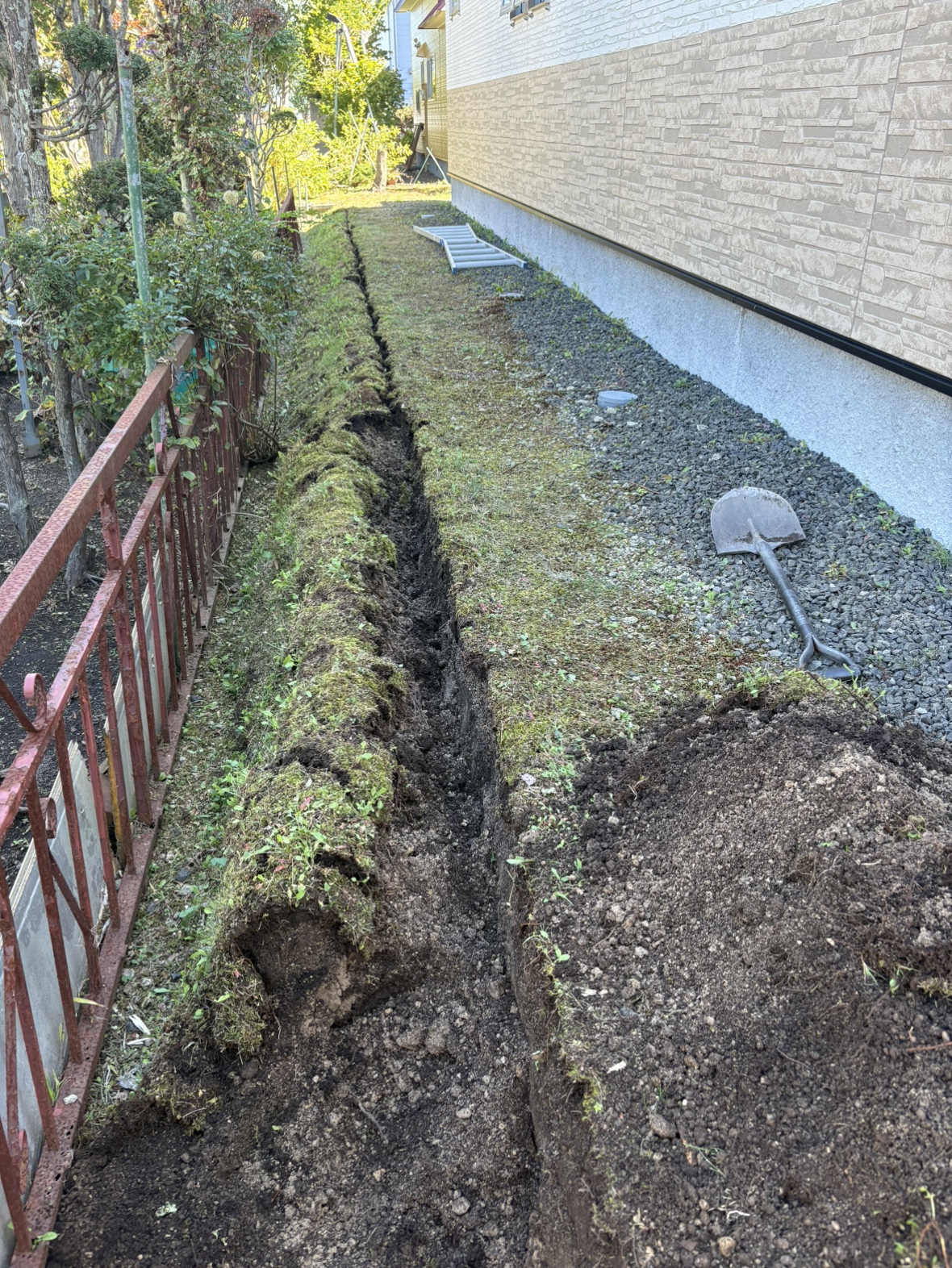 大工工事ならいいのですが、土木作業となるとさすがに一人でやるのはしんどいですね(笑