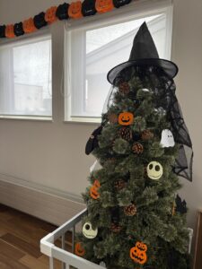 奥様がクリスマスツリーを早めに出してハロウィン仕様にしてました。