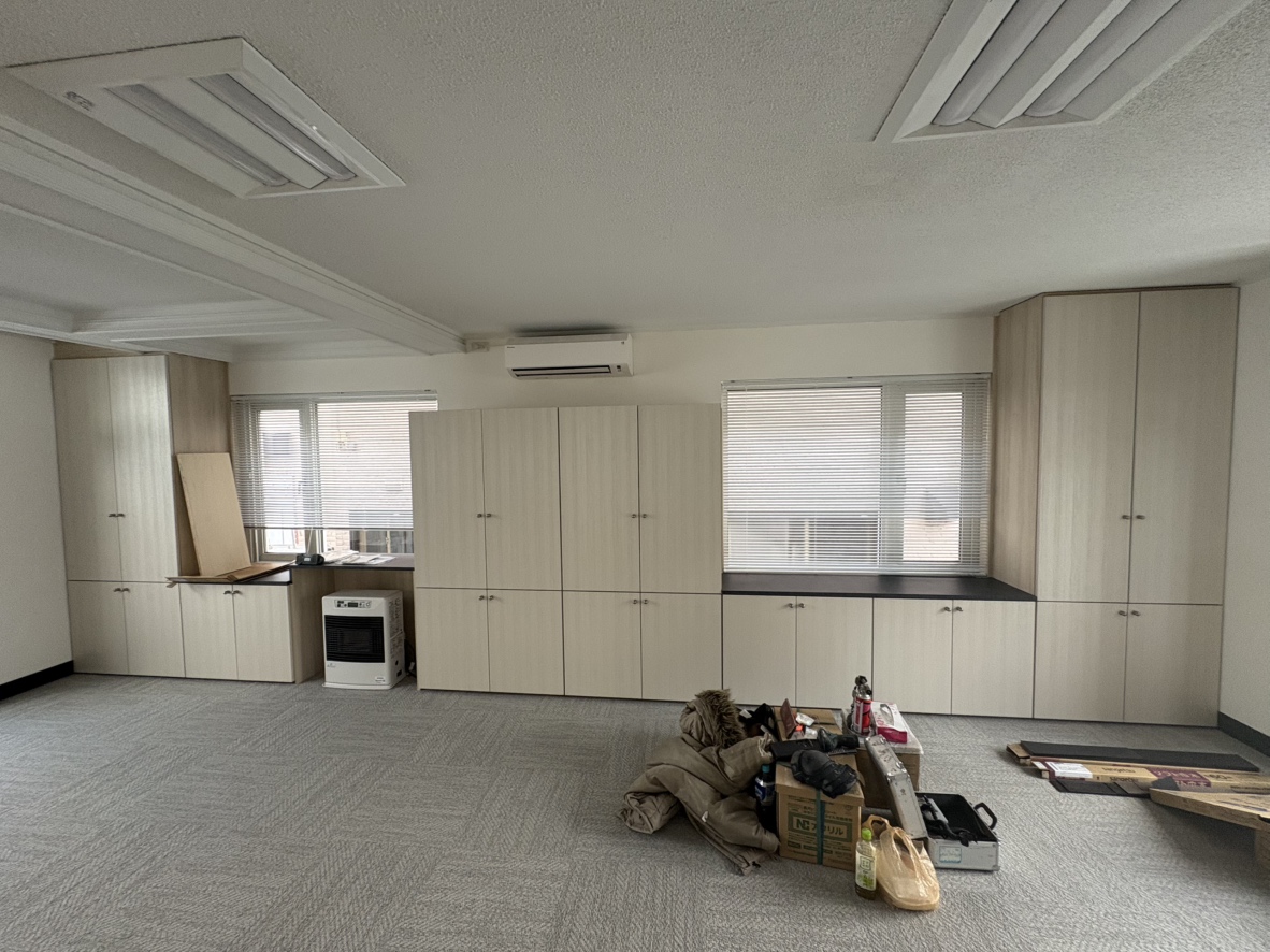 ●大型収納棚や打ち合わせスペース