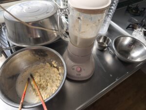 休日前夜より大豆を水に浸してからスタートです。