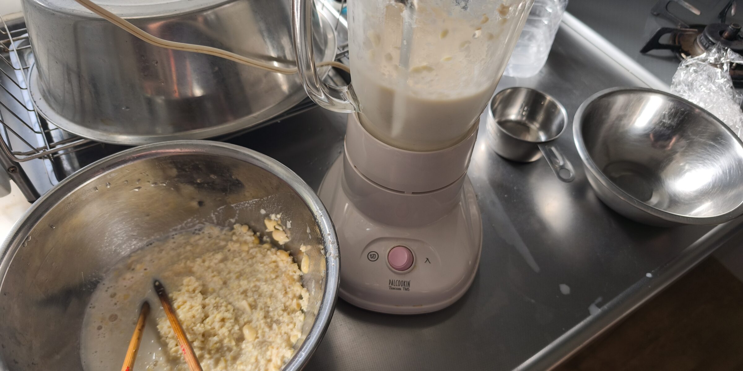 休日前夜より大豆を水に浸してからスタートです。