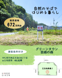今回の不動産の情報は、建築条件付きの土地【グリーンタウン芸術の森】です。