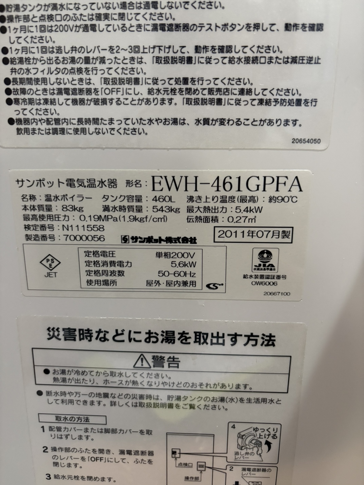 ちなみに上のボイラーは2011年製。今年で15年目なので、すごく頑張っているボイラーだと思います!